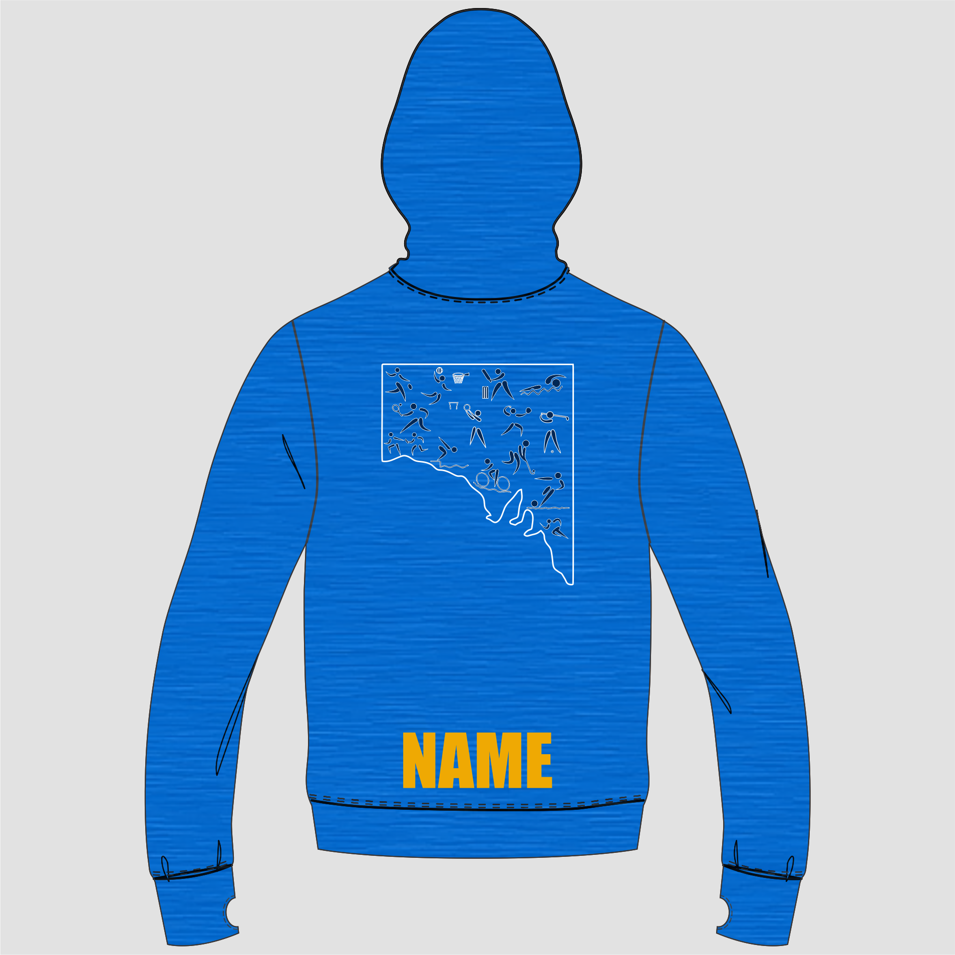 FEATURES Hood and drawstrings Contrast piping on front and back 2 front pouch pockets with contrast piping Ribbed cuff and waist Personalization Option: Add a name to your product for an additional $15. Please enter the desired name under another product as " NAME"